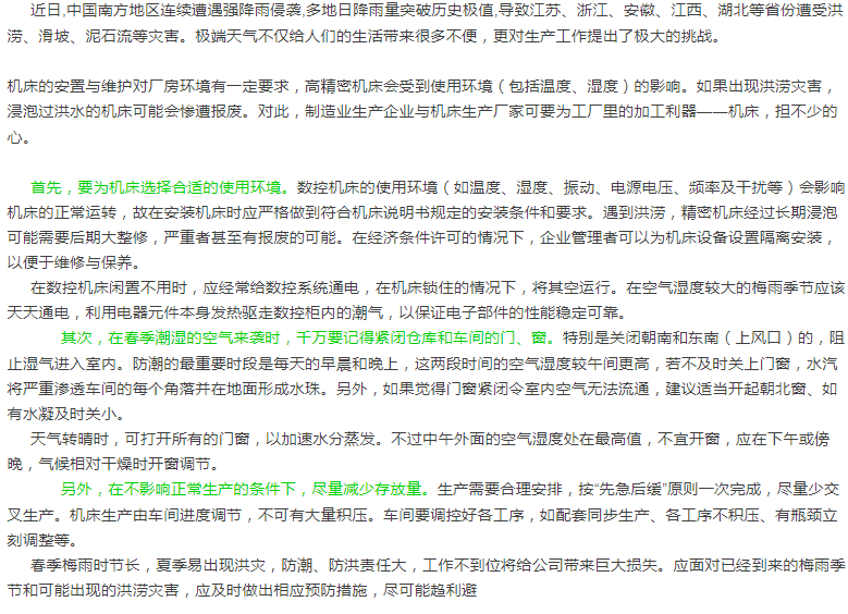 进入多雨季 生产企业在机床维护上该注意什么?
