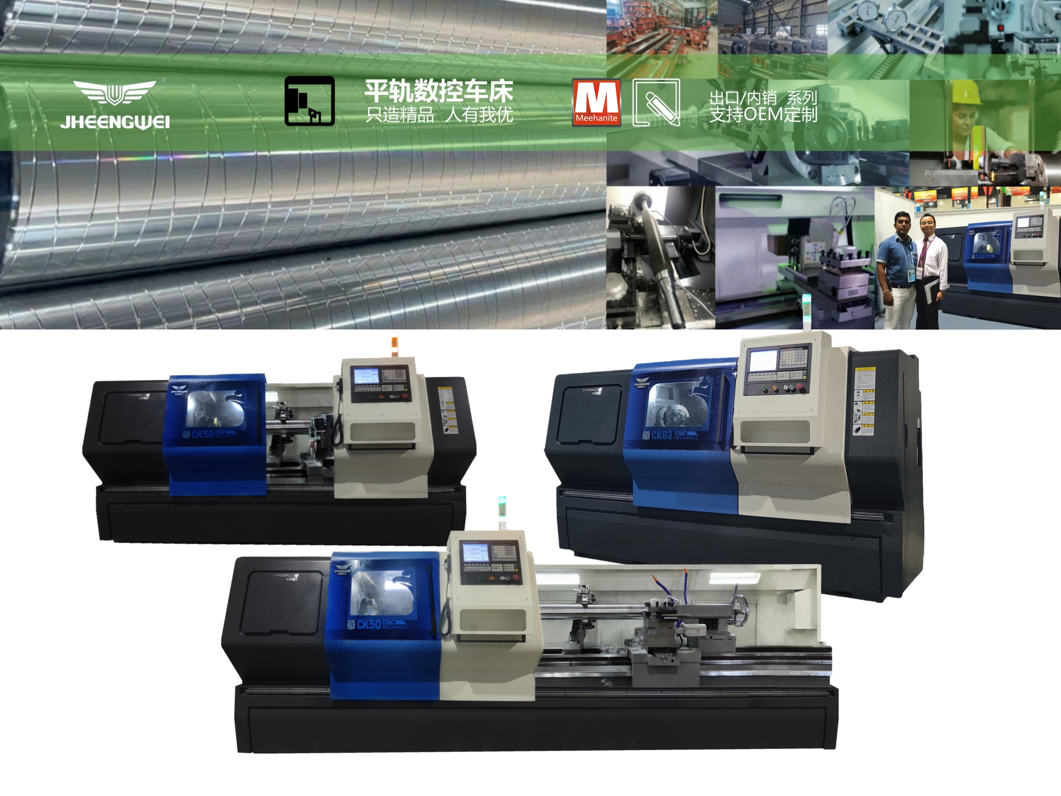 钲威精工CK40、CK50、CK63/80平轨数控车床是以出口标准制造和检验的高标准数控车床,铸件采用HTC300树脂砂铸造,丝杆/轴承/刀塔/电气均选用中国最优秀的品牌,可根据内需/外方要求定制设备。多年来,钲威精工一直秉承只造精品,人有我优,人无我有的理念生产制造数控机床,产品出口多个国家。