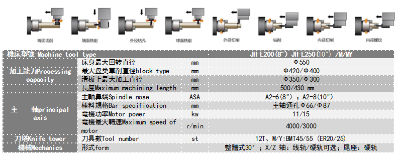 型 号 FANUC/台湾新代 ; JH-E200/250 Pro M/MY/Z²