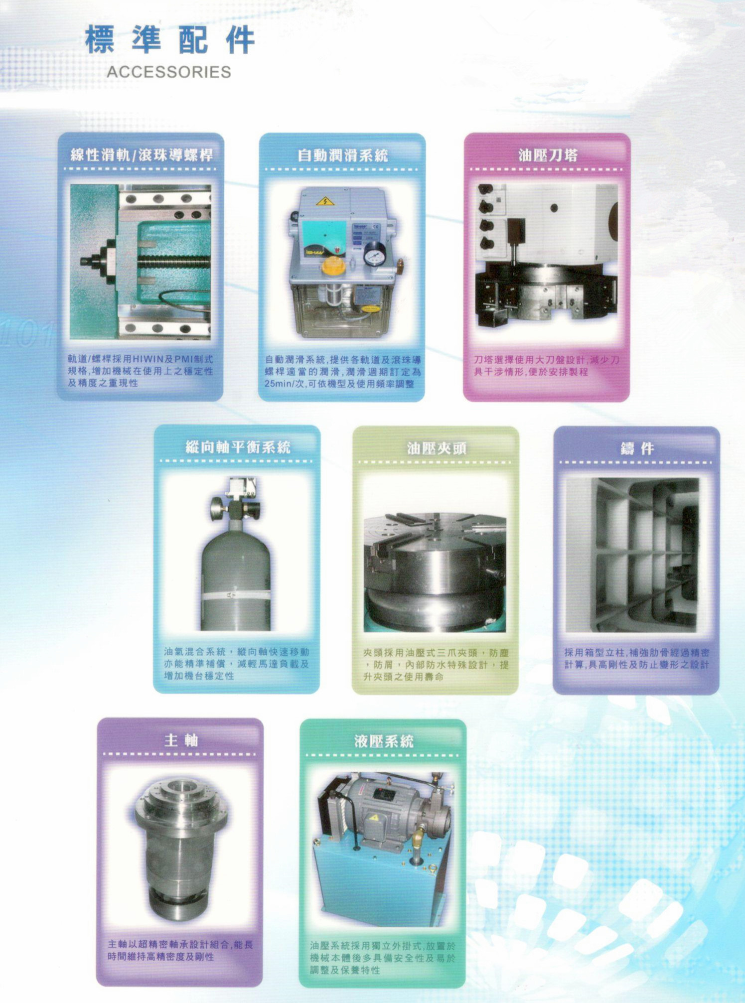 2、立式車銑複合:为三轴联动、半闭环控制。带C轴分度功能并配备了动力刀塔,除具备数控车床的功能外,还具备一定的铣削钻功能。本机床可加工几何形状复杂,尺寸繁多,精度要求高的回转类零件,内外圆柱面、圆锥面、阶梯面、球面及其它各种回转曲面、内外沟槽,各种公、英制内外螺纹。动力刀具可铣轴向和径向直槽和螺旋槽,铣平面,钻孔,铰孔,攻丝等。适用于中、小批量及单件生产,也可用于复杂零件的大批量生产。