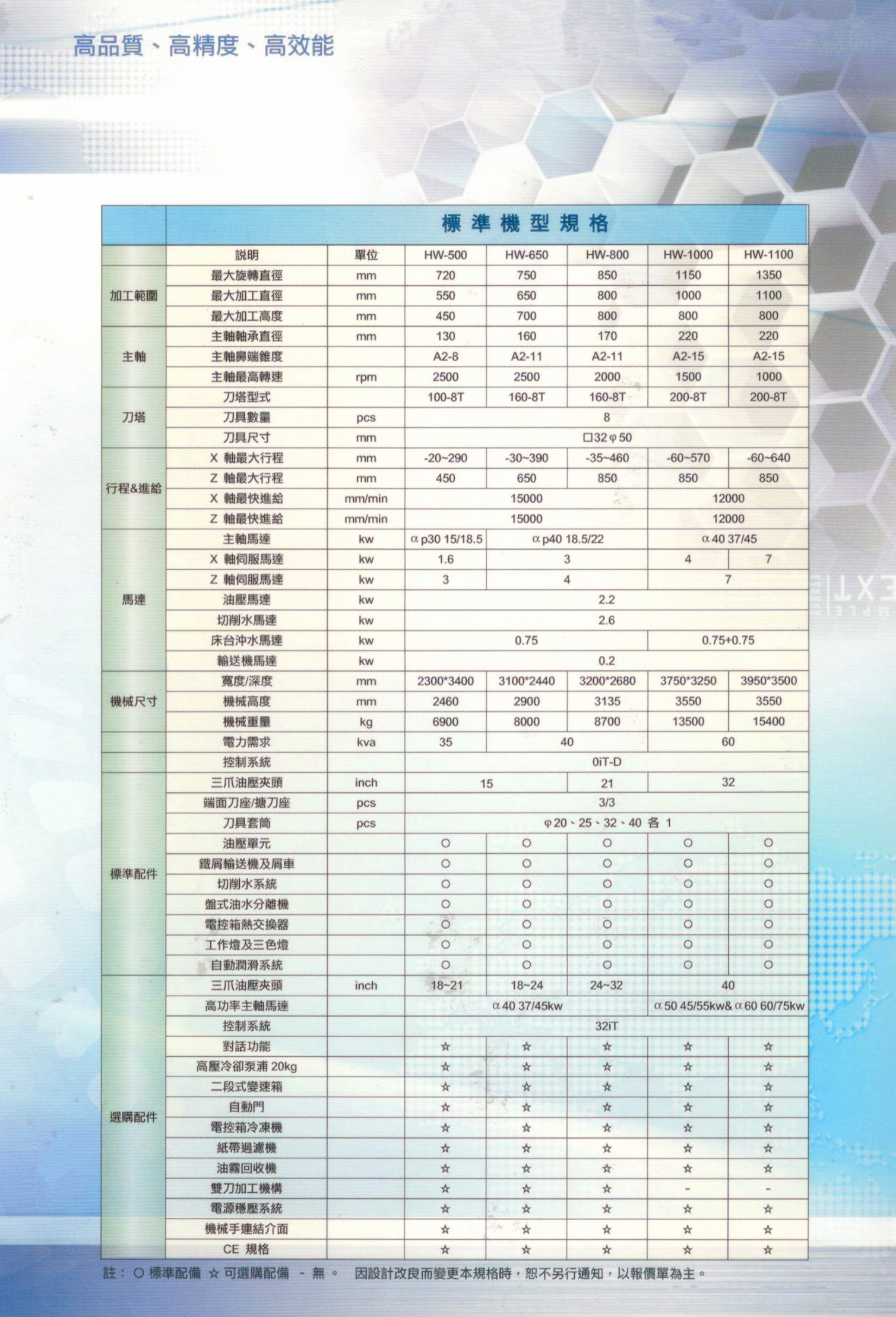 规 格 HW-500P/HW-650P/HW-800P/HW-1000P/HW-1100P